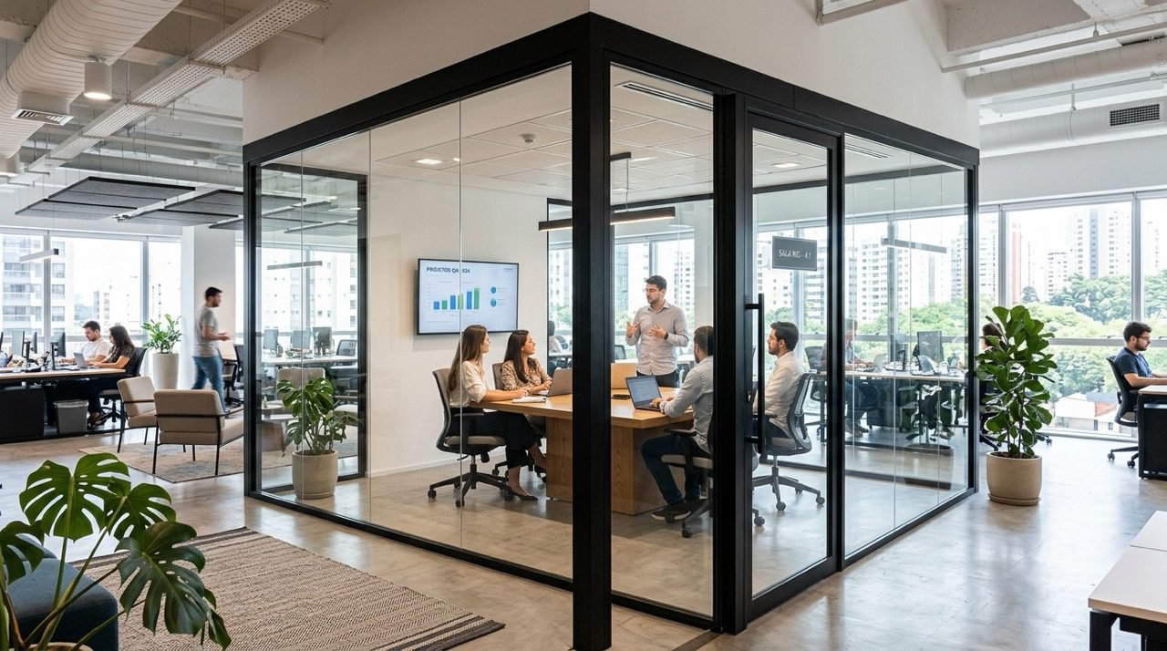 A sala de vidro é uma solução moderna para quem deseja um ambiente refinado, iluminado e integrado. Muito utilizada em residências, áreas comerciais e espaços de convivência, ela proporciona sensação de amplitude, conforto visual e alto padrão de acabamento.